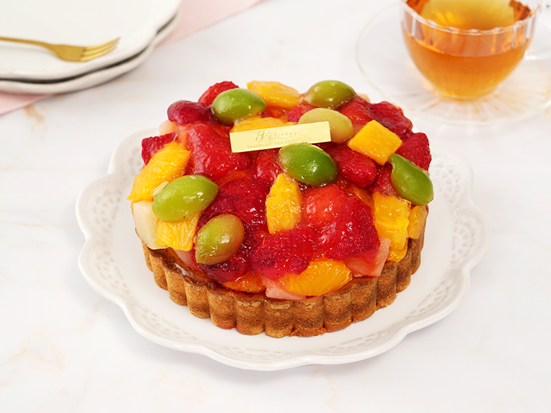 「フルーツをとにかくたっぷり味わいたい!」そんな想いに応えて誕生したのが、スタイル自慢の鬼盛りフルーツタルトです。いちご・マンゴー・洋梨・みかん・若桃――5種類のフルーツを、惜しみなく盛り付けた贅沢なタルト。フルーツの総重量はなんと約400g、タルト全体では約1kgにもなる豪華さです。ひと口ごとに広がる果実の甘みや酸味、食感のハーモニー。さまざまなフルーツの魅力を味わい尽くせる、フルーツ好きにはたまらない贅沢な一品です。バターの香り豊かなサクサク生地に、しっとり濃厚なアーモンドクリームを重ね、解凍後も焼き上がりの風味がしっかり残るよう工夫されています。さらに蒜山高原で育ったジャージー牛の搾りたて牛乳と、マダガスカル産バニラを使ったホワイトカスタードが全体をまとめ上げます。フルーツの瑞々しさ、タルト生地の香ばしさ、クリームのコク。三つの美味しさが一体となった、タルト専門店だからこそできる“究極のフルーツタルト”です。