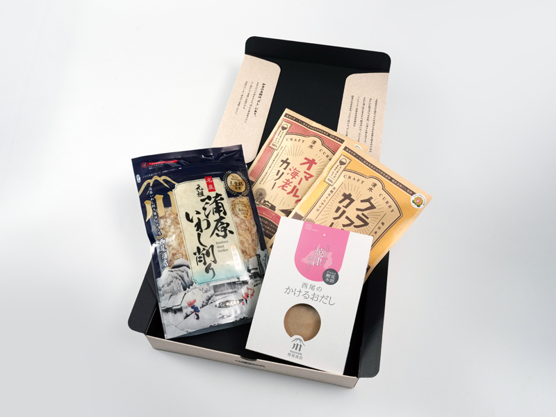 Hinoichiがご用意するのは、削り節・クラフトカリー・だしパウダーの中から選べる、全4点の特別なギフトセットです。